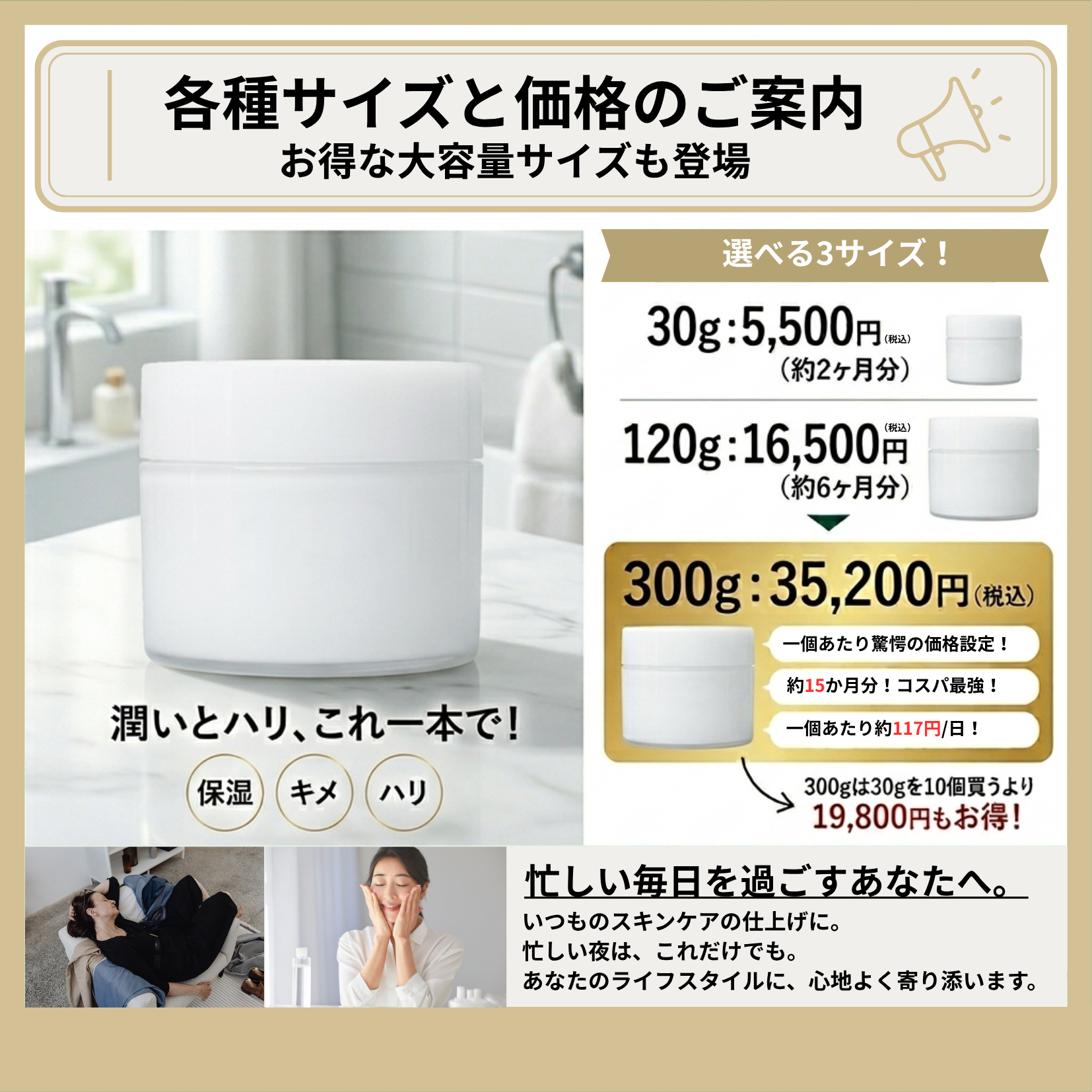 洗顔後適量を手に取り、顔や全身になじませてください。